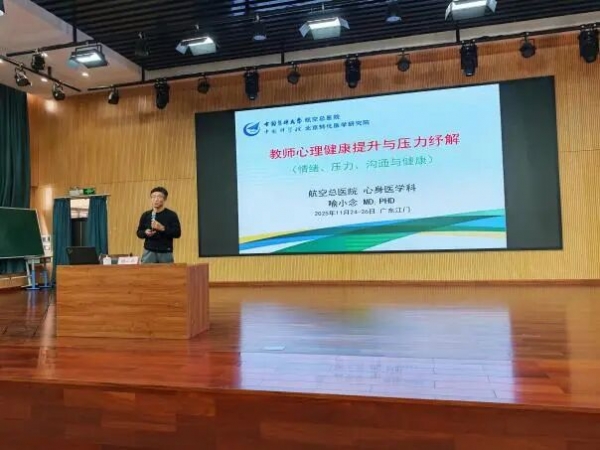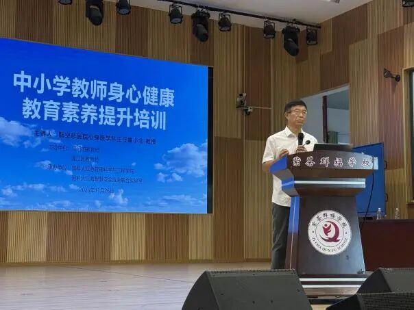 为深入贯彻落实国家、省关于加强新时代中小学心理健康教育的相关政策要求,增强新时代教师心理健康建设与学生心育工作实效,2025年11月24—26日,由江门市教育局主办,中国科学院大学应急管理科学与工程学院、中国科学院大学江海智慧安全应急联合实验室、蓬江区教育局、江海区教育局、新会区教育局承办,集中开展中小学教师身心健康教育素养提升培训。活动特邀航空总医院心身医学科主任、医学与心理学双博士喻小念教授专题授课。江门市教育局党组副书记、局长梁凤琼,中国科学院大学教授、博士生导师、应急管理科学与工程学院副院长、集成电路学院执行院长焦建彬出席活动,蓬江区、江海区、新会区教育局局长,市教育研究院、市直中小学校、幼儿园有关负责人,以及近1300名中小学校班主任和心理健康教育教师参加培训。